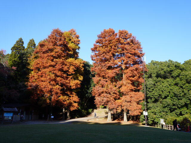 現在平和台公園では、池畔広場や新池付近のラクウショウが、ふんわりと赤やオレンジに…