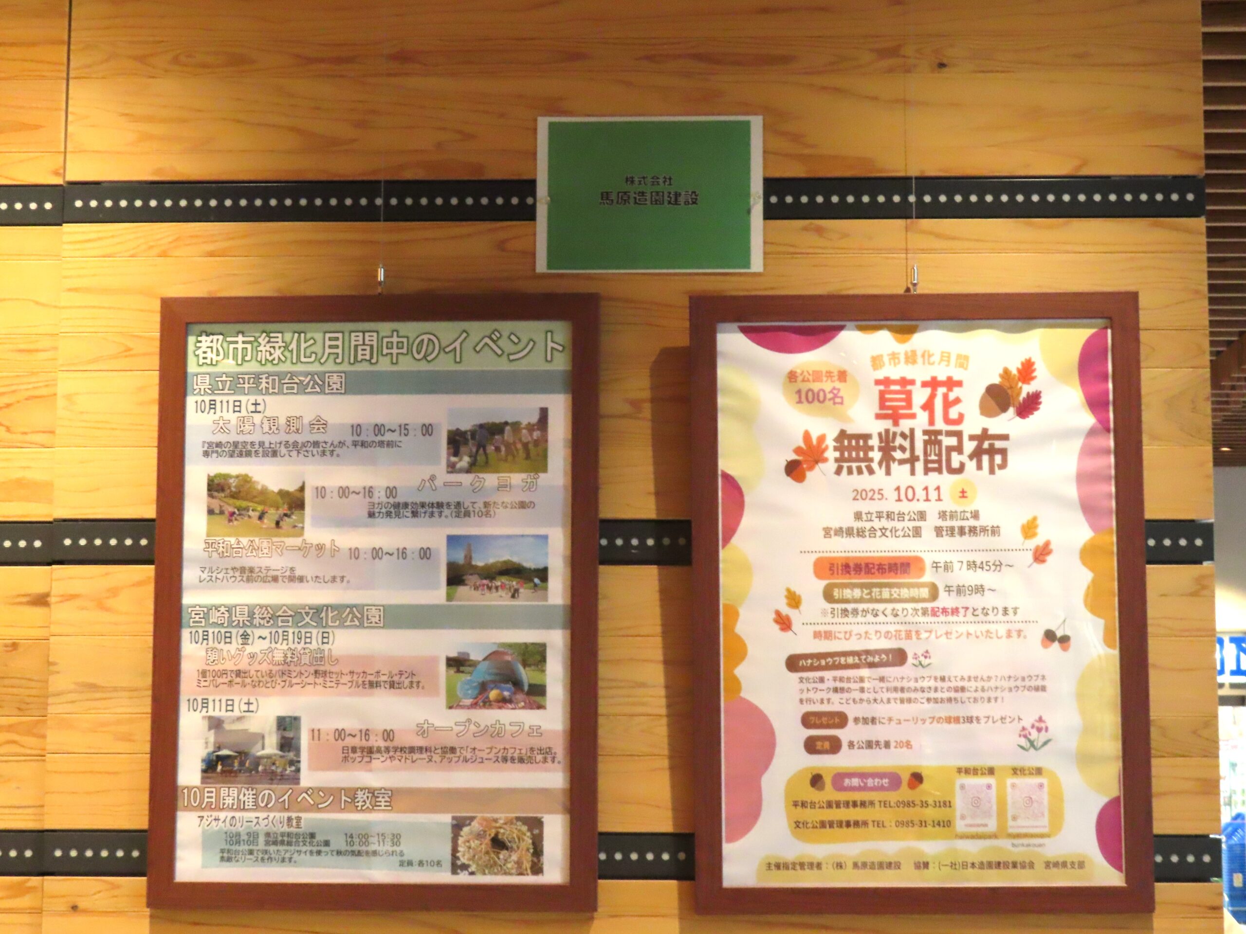 その中には平和台公園・文化公園の都市緑化月間中のイベント等も展示しています。