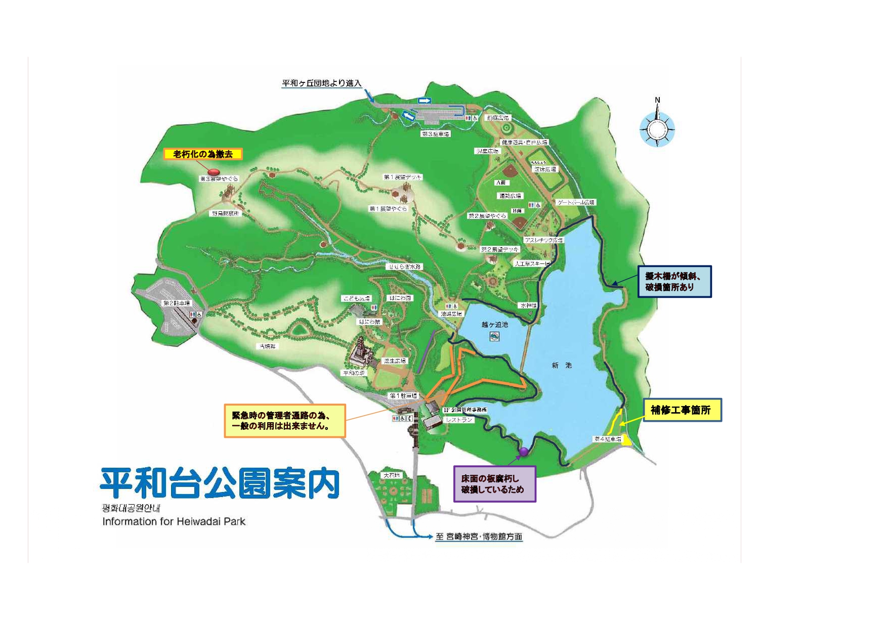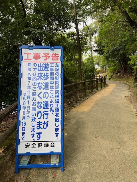 工事期間中は、安全確保のため新池周囲から第4駐車場周辺の園路が通行できません。