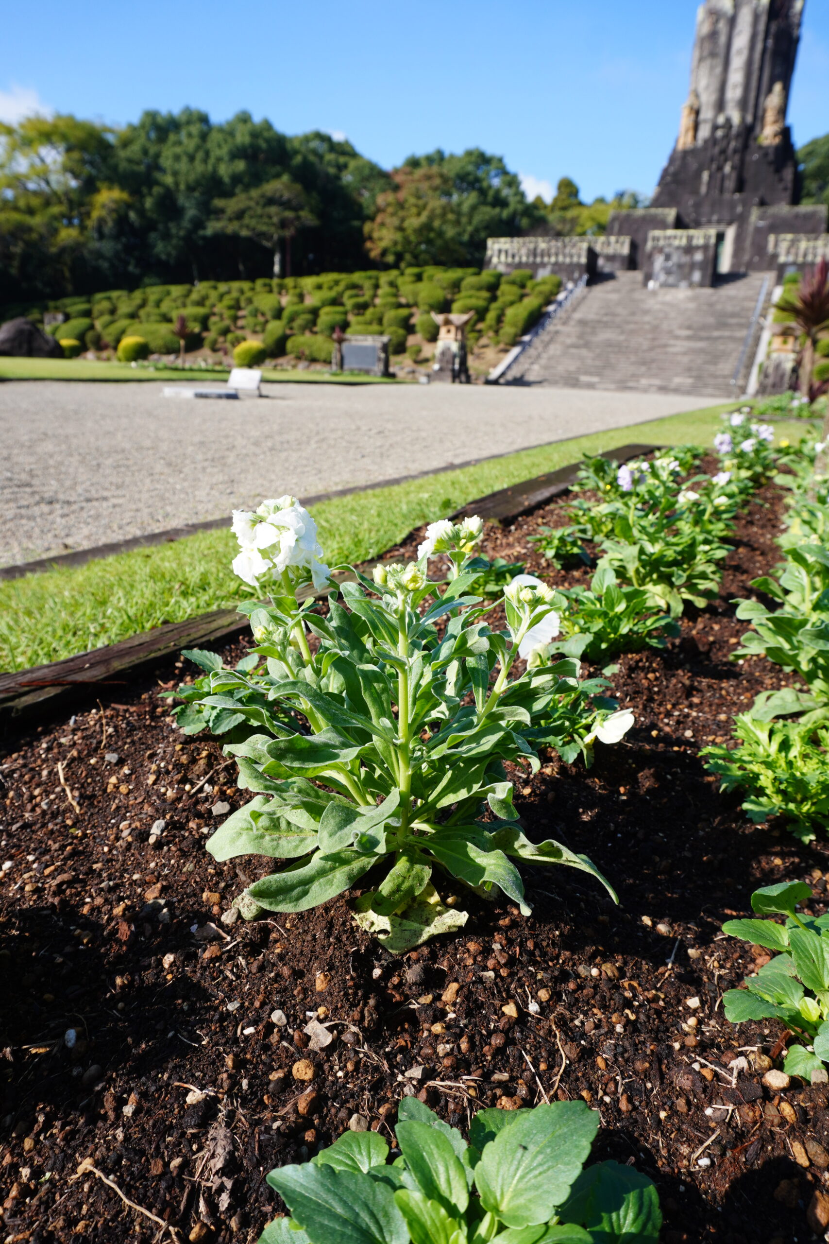 11月10日(月)、平和の塔前の花壇の植え替えを行いました。