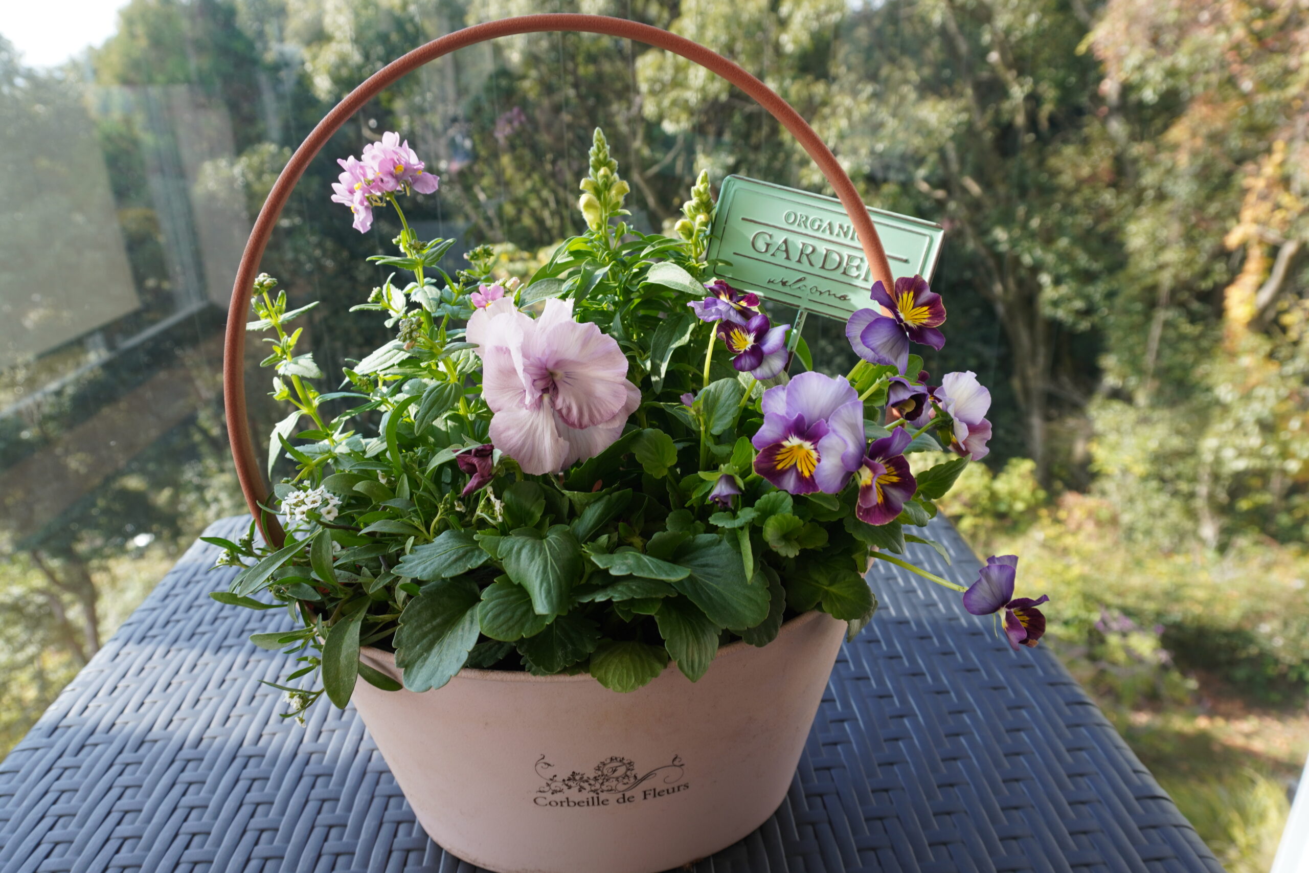 今回使用した花材は、パンジーファビュラス・アリッサム・ネメシア・プレミアムパンジー・キンギョソウの5種類です。