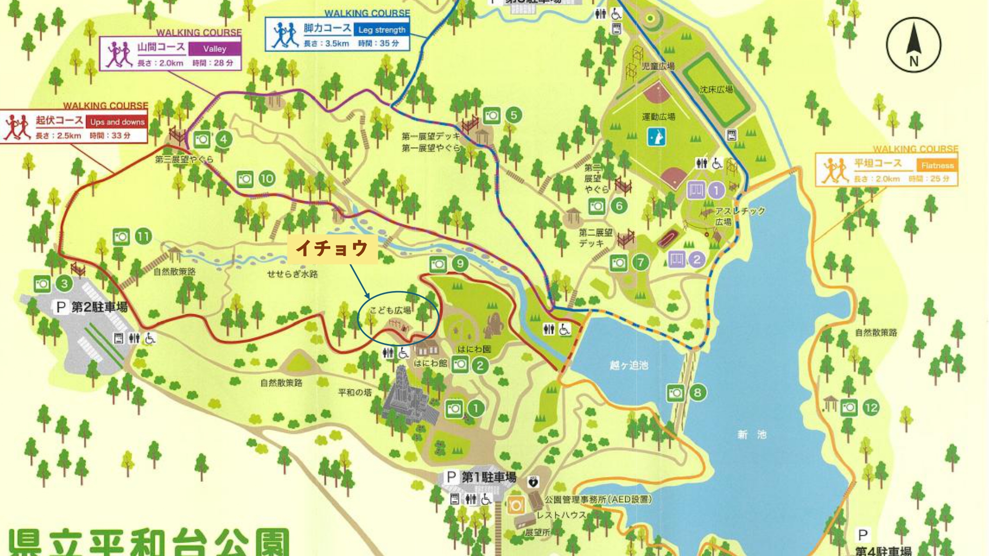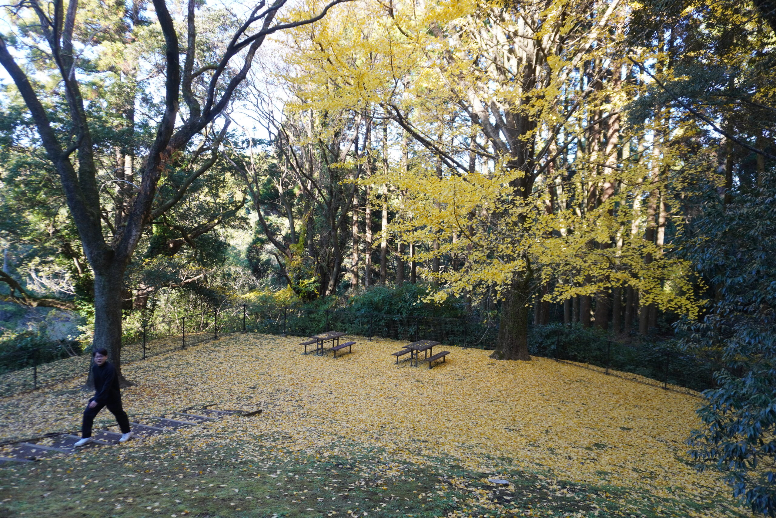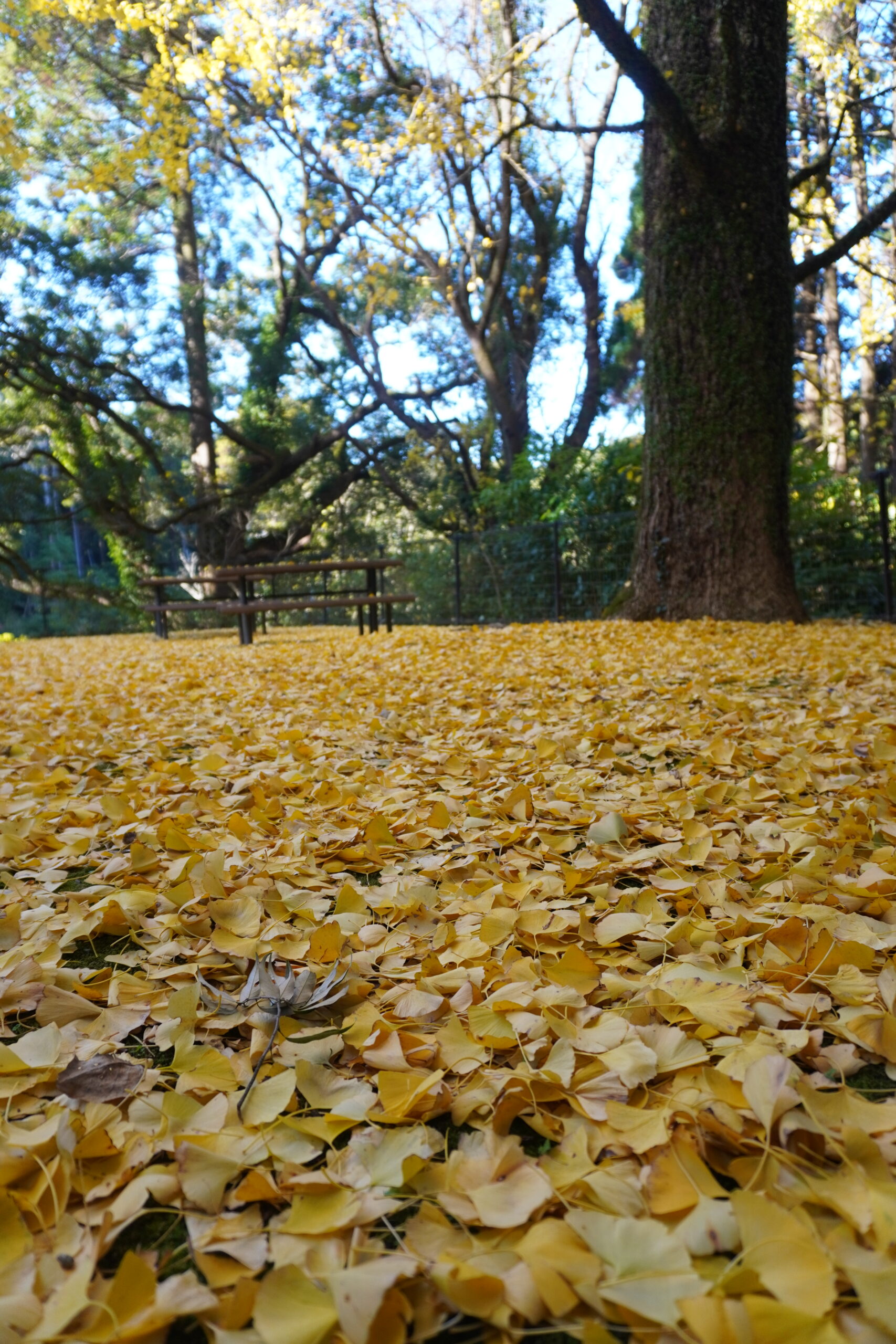 こども広場に入ると、黄金色に色づいたイチョウの葉が広がり、とても美しい景色が広がっています。