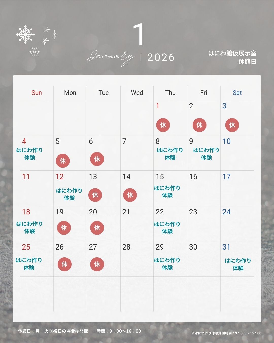 【2026年1月】 はにわ作り体験 可能日ご案内🌿