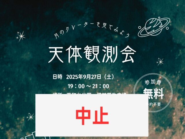 9月27日(土)に予定しておりました「天体観測会」は、雨の予報が出ており、天候が…